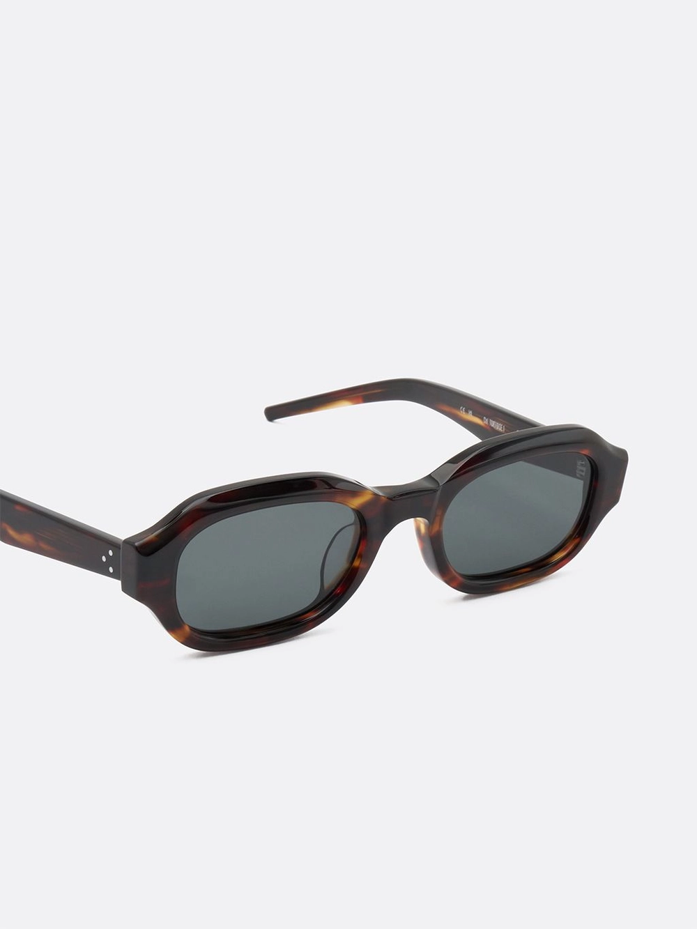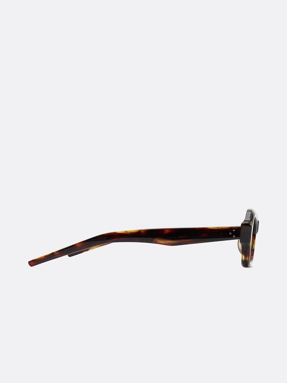 THEORY NUMBER 006 is crafted with a refined square shape and angular detailing along the top for a modern look. The voluminous temples feature logo and rivet accents, adding a sophisticated touch.