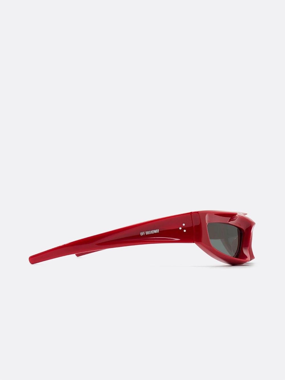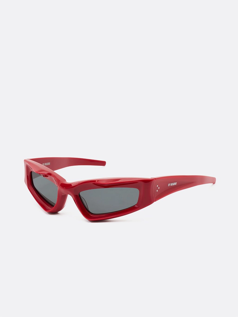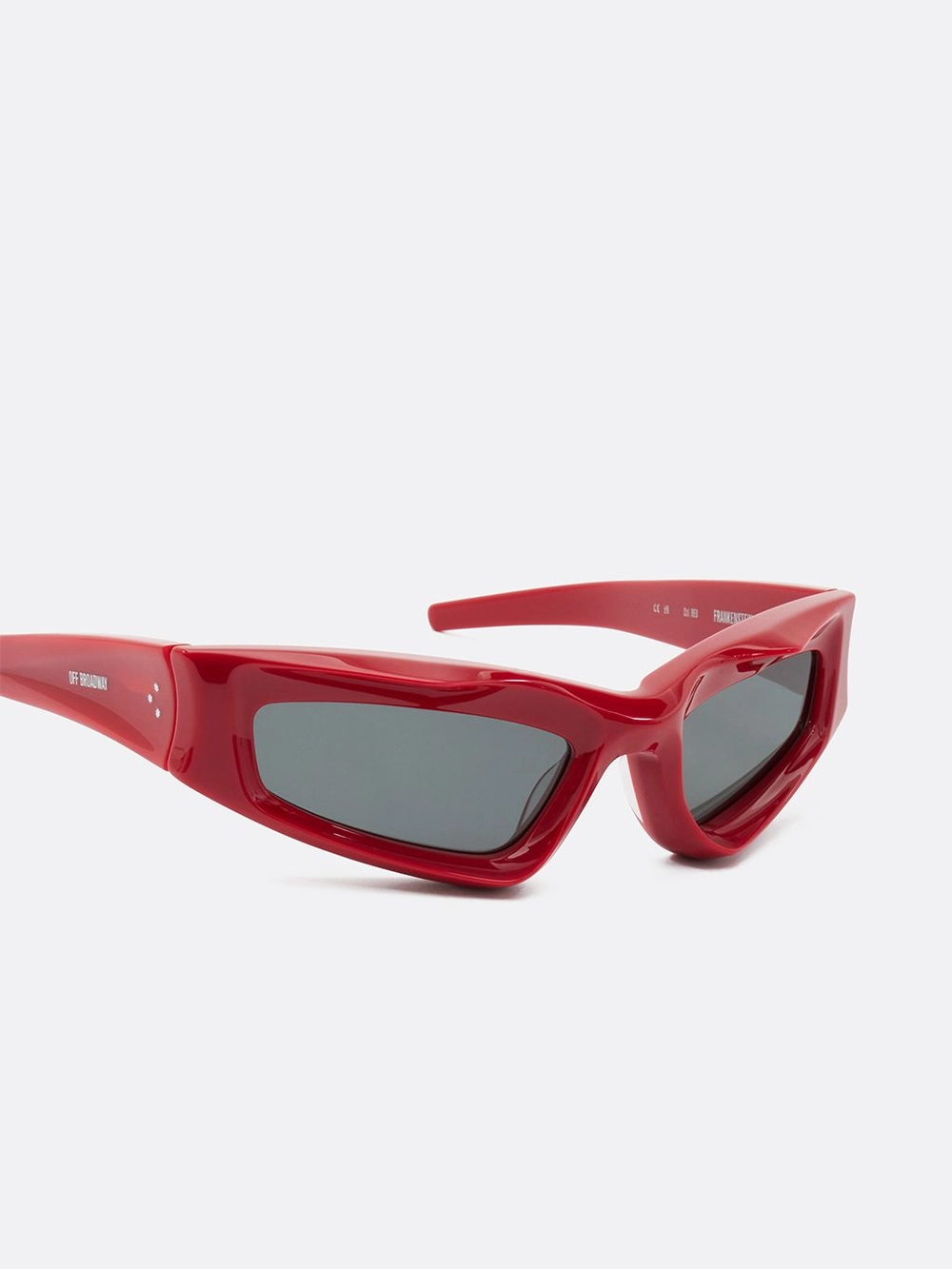 The FRANKENSTEIN sunglasses fuse extreme cat-eye and square shapes into a distinctive silhouette. Sporty temples and rivet details enhance the couture sensibility, while headband-style wearability allows for avant-garde styling.