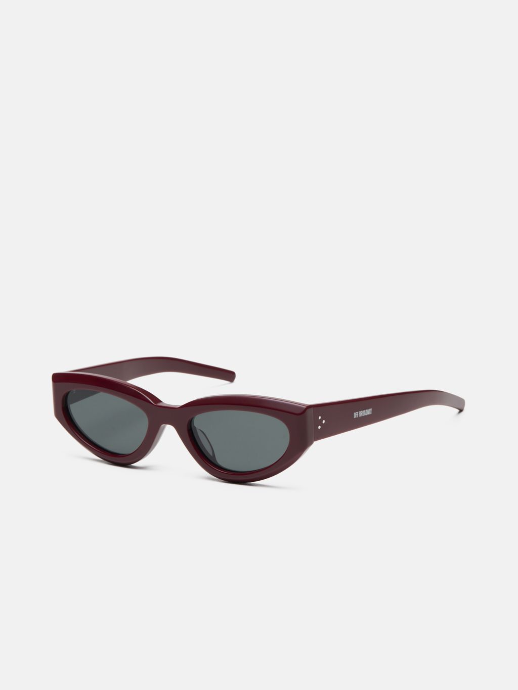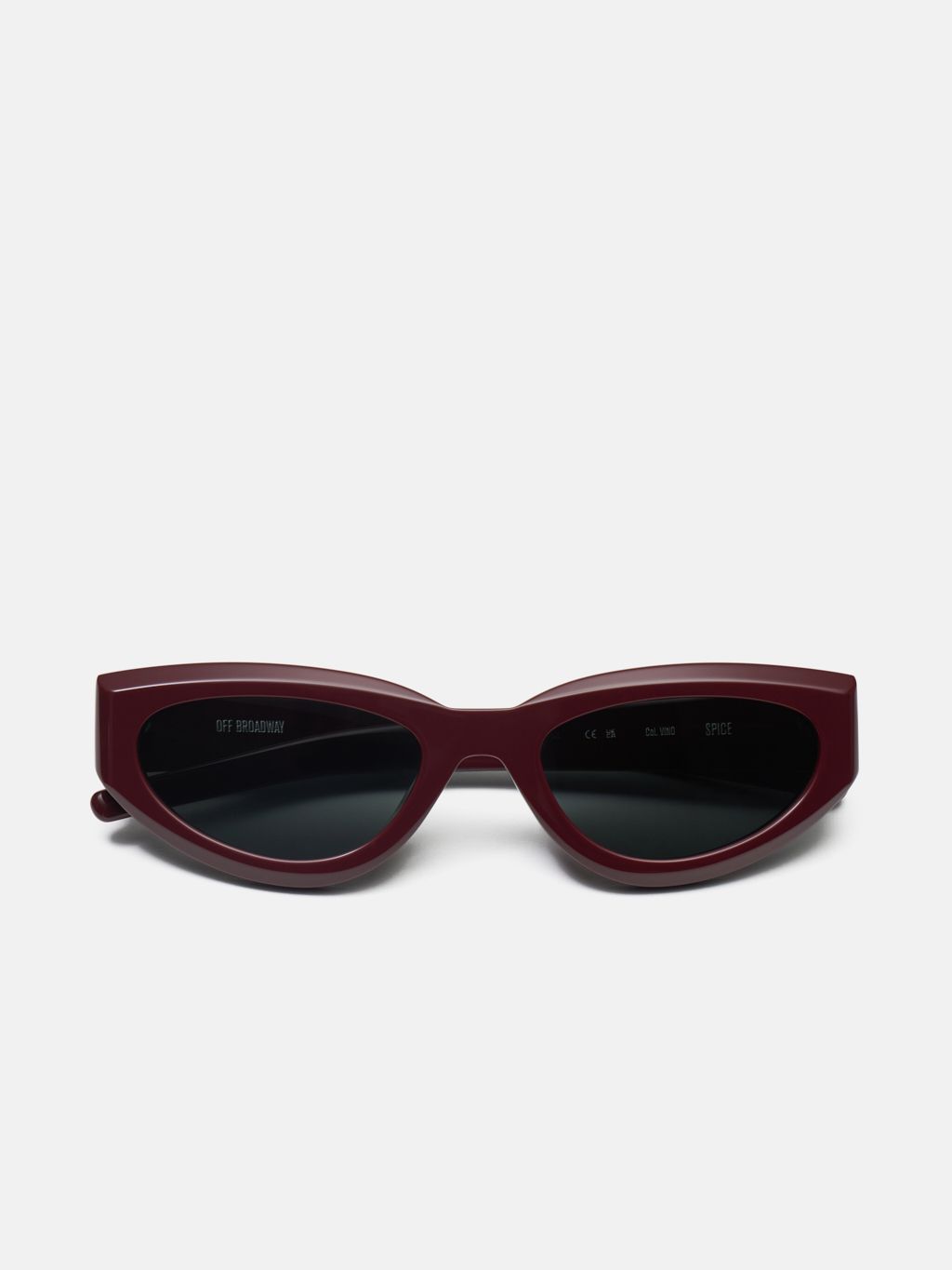 The 'SPICE' sunglasses from Off Broadway's 2025 collection feature a butterfly shape that accentuates elegant curves. The temples are adorned with a logo detail and circular rivets, providing a restrained yet sophisticated touch.