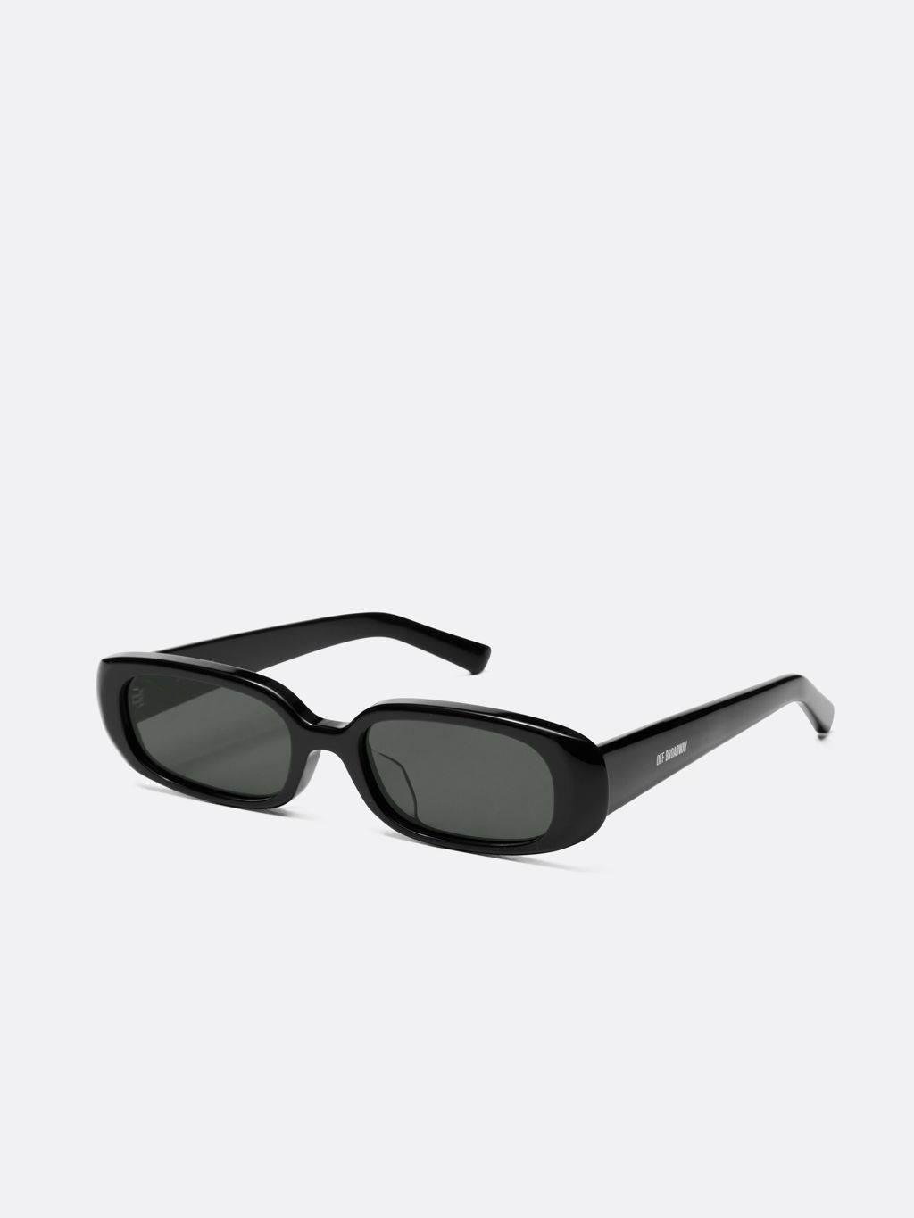 Slim rectangular sunglasses featuring minimalist proportions and clean linear elements. The compact frame lines create a sharp yet refined mood, while voluminous temples add a sense of stability and balance to the overall silhouette.