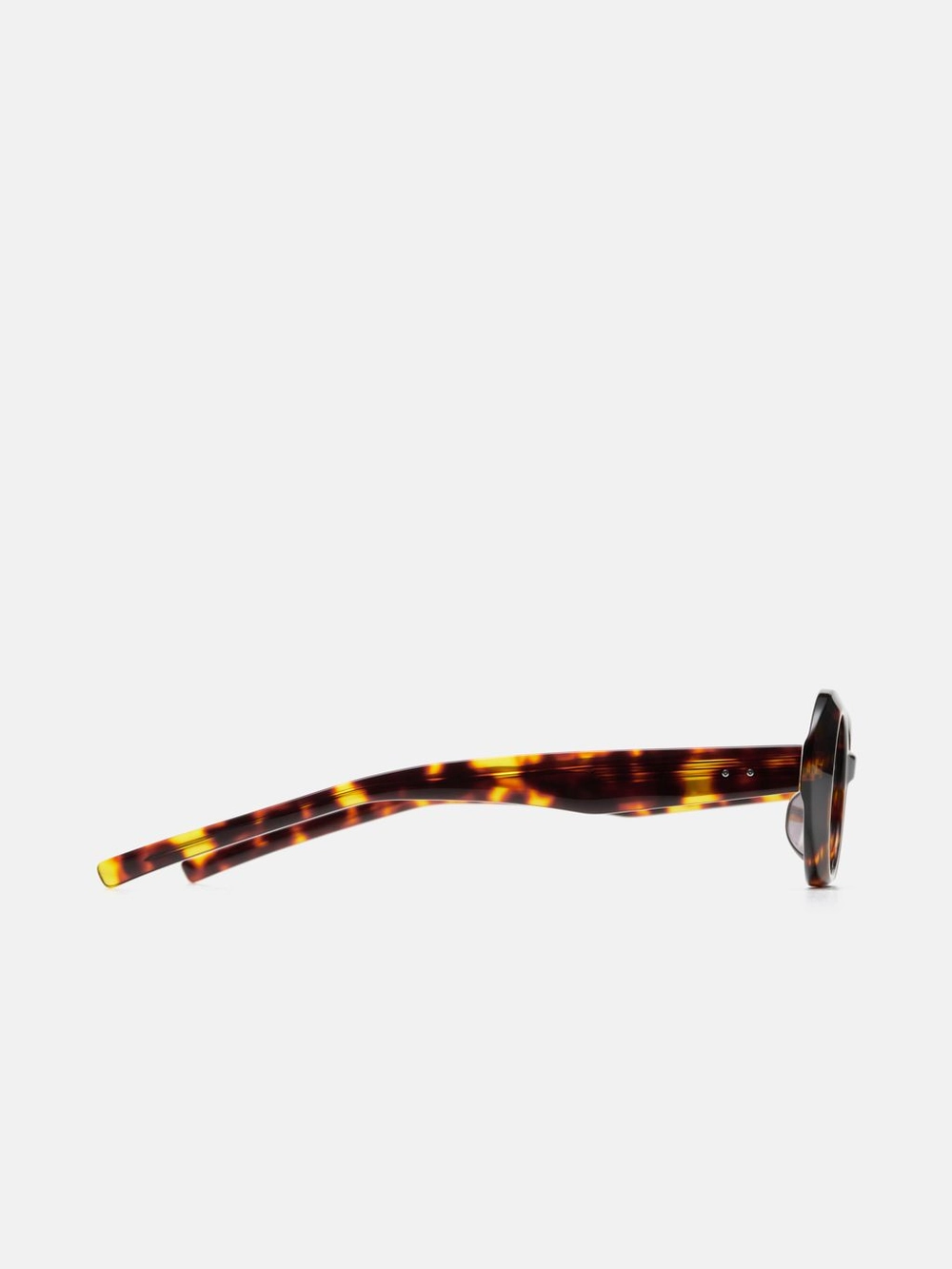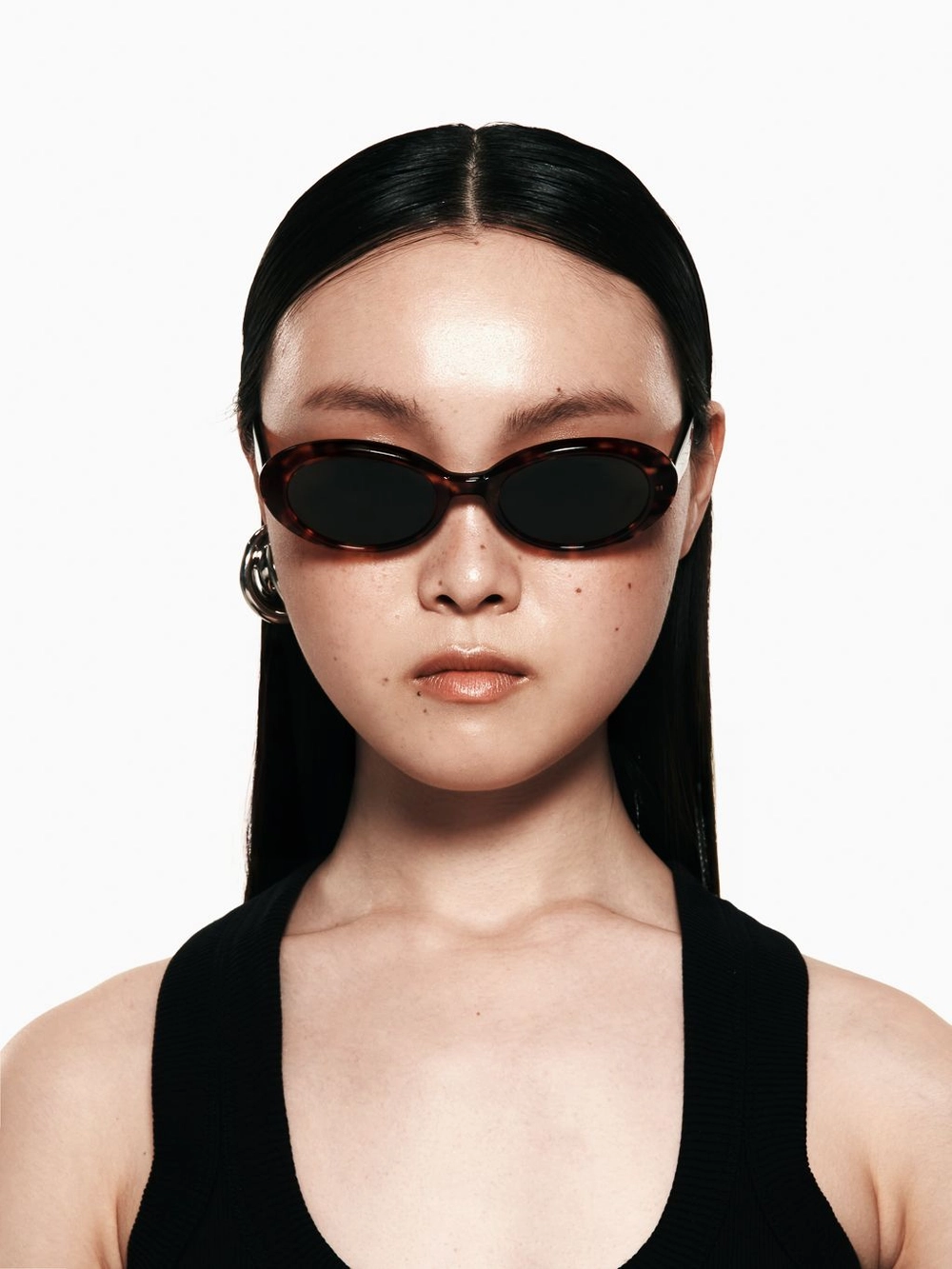 The sophisticated oval silhouette is complemented by slim rims and ultra-flat lenses, creating an exceptionally lightweight frame. The front of the frame features structural diagonal cuts, adding a modern touch.