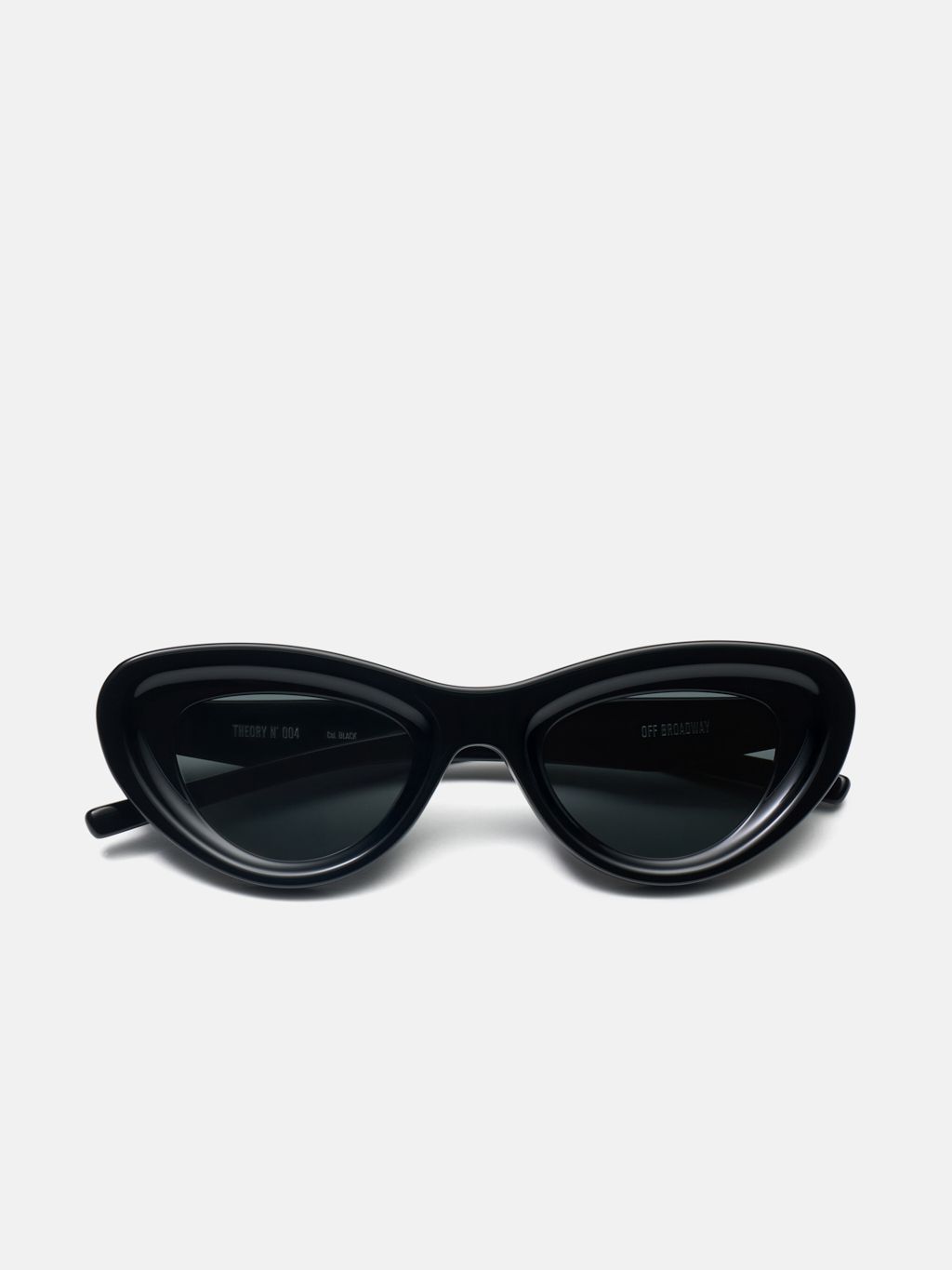 THEORY NUMBER 004 features a bold silhouette and an embossed cat-eye frame, harmonized with sculpted, bold temples to create a striking and refined presence.