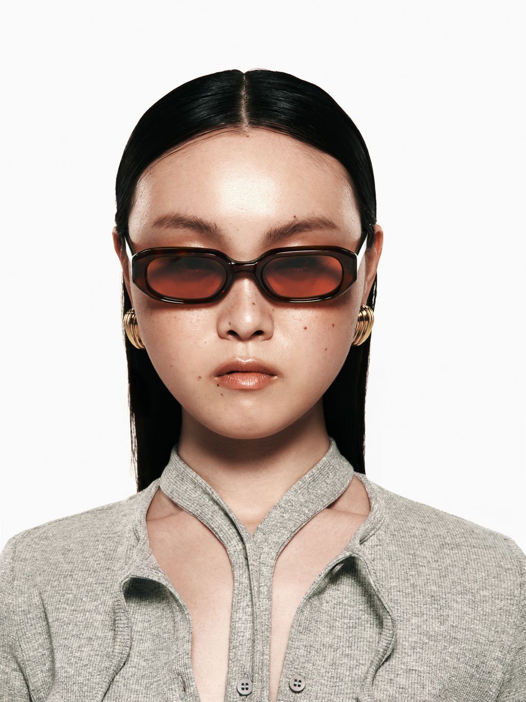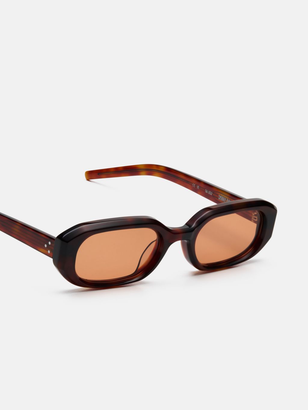The SKINNY CIGARETTE eyewear features a low hexagon silhouette and a structurally cut front design. Sleek, straight temples and silver details enhance its elegance, while a single-side logo embellishment adds a refined touch.