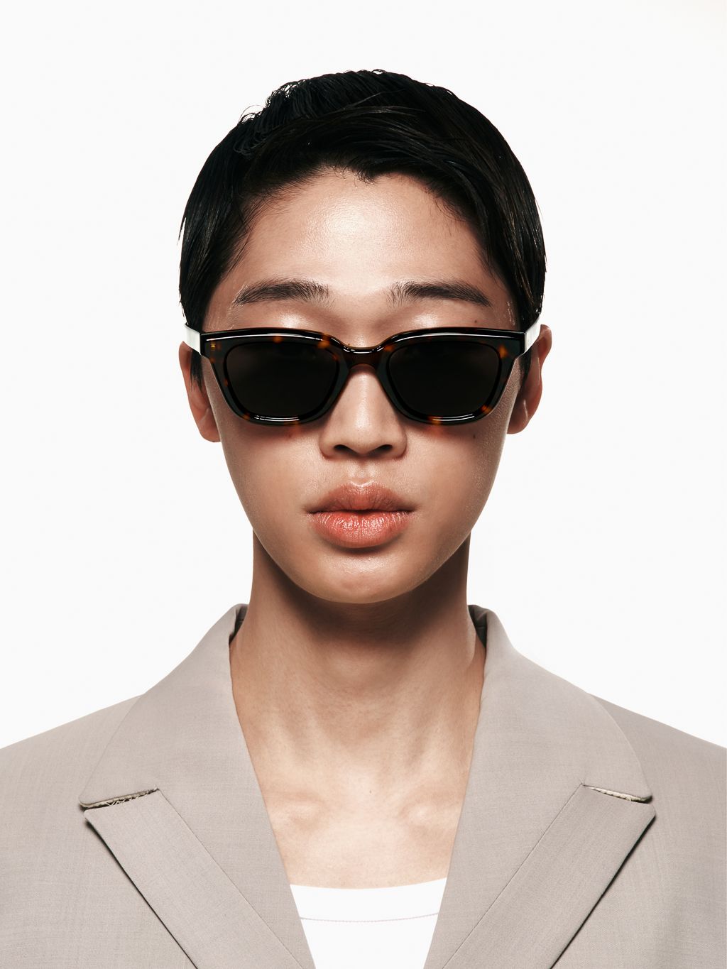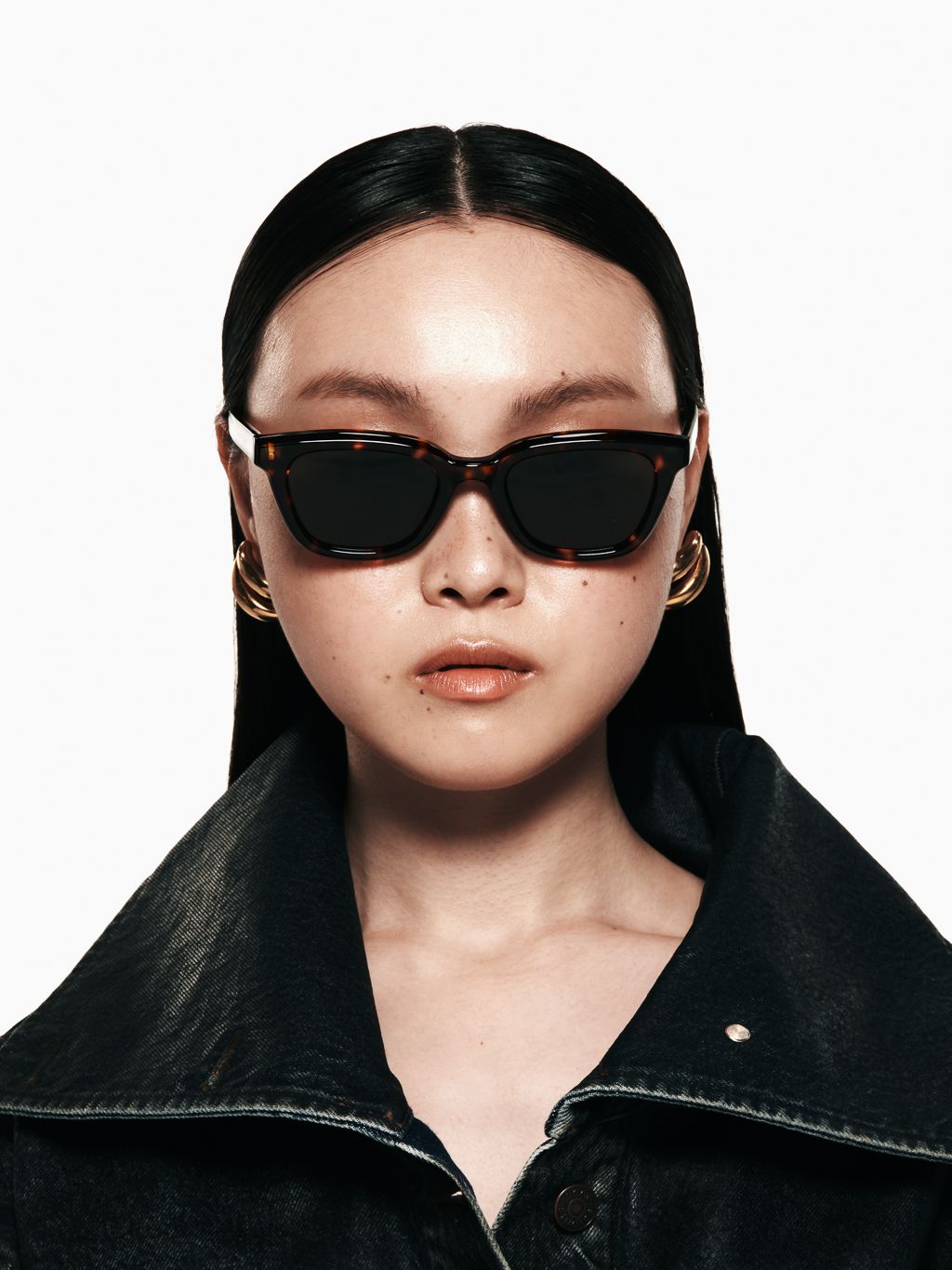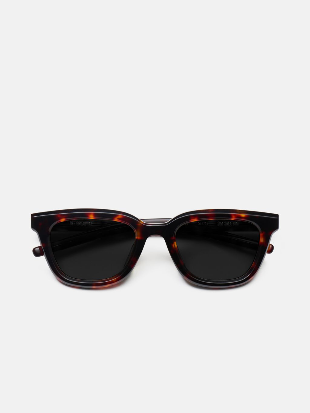 The SIM SALA BIM sunglasses feature a low square shape that brings a modern twist to a vintage mood. Delicately placed logo and rivet details on the temples complete the design with a refined ambiance.